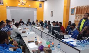 Suasana Rapat Koordinasi antara Pengurus Askab PSSI Mimika, Executif Commite (Exco) dan 22 Klub sepakbola, berlangsung di Sekretariat Askab PSSI Mimika, Rabu (6/7/2022)/Foto : Istimewa