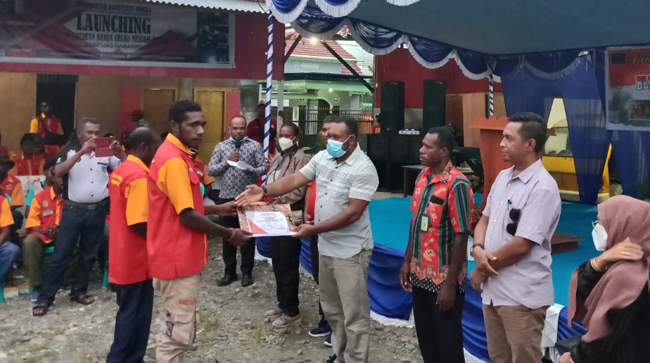 Penyerahan sertifikat Kompetensi tersebut, berlangsung di Halaman BLK Merah Putih Kampung Nawaripi Distrik Wania, Timika, Sabtu (30/4/2022).