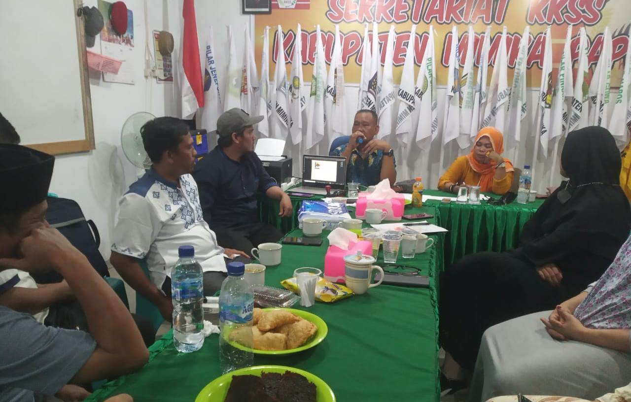 Ketua KKSS Mimika, Syamsudin B bersama Bendahara, Hj Rampeyani sekaligus anggota Steering Comite dan tampak hadir Ketua Panpel Musda Saharudin Lewa, Sekretaris Abzi Hamzah , bendahara dan dua anggota SC, Ardi,ST dan Husyen di Sekretariat KKSS Mimika, Jumat (2/7) malam tadi/Foto : Istimewa