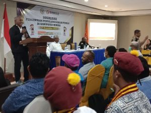TIMIKA, (timikabisnis.com) – Anggota Komisi II DPR RI, Komarudin Watubun,SH,MH pada, Rabu (7/12/2022) membuka secara resmi kegiatan Sosialisasi Pengawasan Penyelenggaraan Pemilu di kabupaten Mimika yang diselenggarakan oleh Badan Pengawas Pemilu (Bawaslu) kabupaten Mimika.