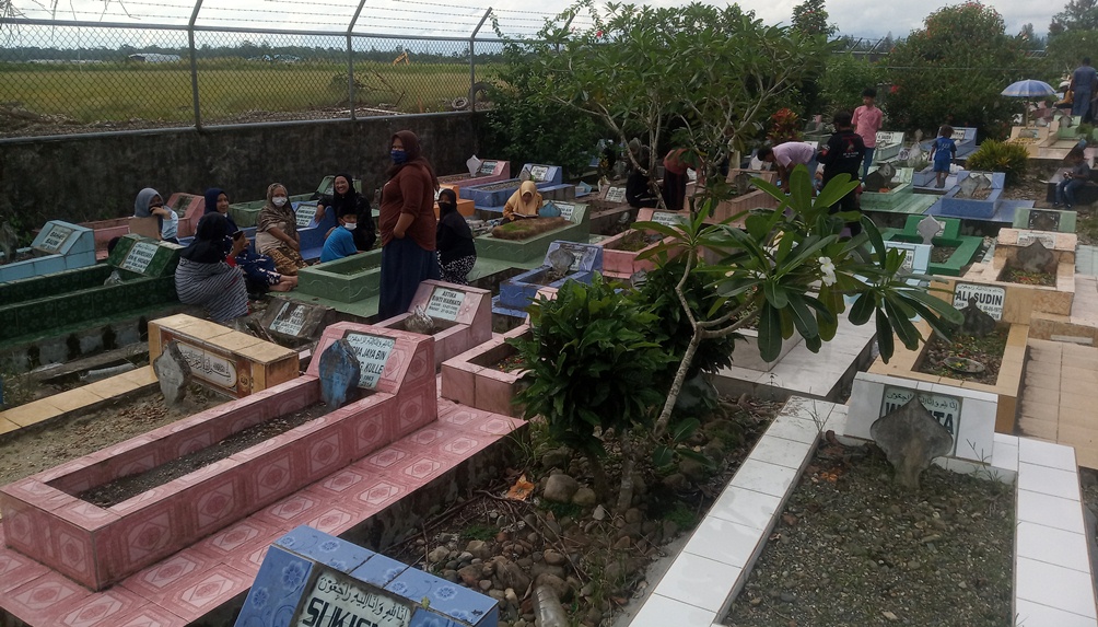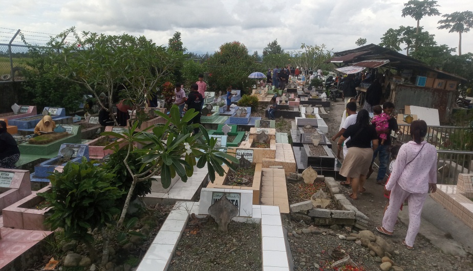 TIMIKA,(timikabisnis.com) – Menjelang sehari sebelum memasuki Bulan Suci Ramadhan, Selasa (13/4) besok, ratusan warga muslim mendatangi lokasi pemakaman umum muslim di Jalan Ujung Airport Timika untuk melakukan ziarah kubur. Puluhan bahkan ratusan warga muslim terlihat padat di pemakaman umum muslim yang terletak di ujung airport, dan  Ziarah kubur merupakan kebiasaan turun temurun yang biasa dilakukan oleh keluarga atau kerabat yang masih hidup, termasuk saat menjelang bulan Ramadhan. Umumnya, kaum muslimin melakukan ziarah kubur untuk mendoakan yang meninggal, mengenangnya, serta melakukan tafakur atas hikmah kematian. Bulan puasa Ramadhan hanya tinggal menghitung hari. Tentunya, ada tradisi yang biasa dilakukan bagi umat Islam sebelum puasa Ramadhan, yaitu ziarah kubur./FOTOGRAFER : HUSYEN OPA