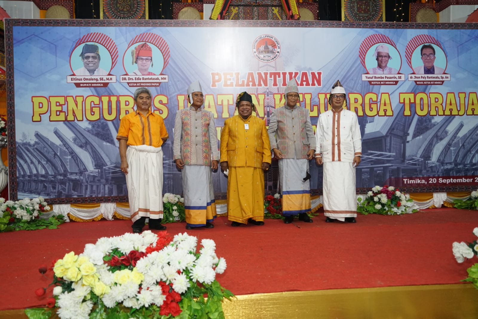 TIMIKA, (timikabisnis.com) – Pengurus baru kerukunan Ikatan Keluarga Toraja (IKT) Kabupaten Mimika,Papua periode Tahun 2021-2025 resmi dilantik oleh Bupati Mimika, Eltinus Omaleng,SE,MH di dampingi Ketua IKT Provinsi Papua, DR. Drs. Edie Rantetasak, MM.