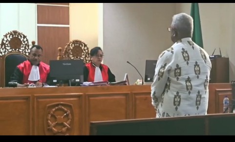 PLT Bupati Mimika, Johannes Rettob saat mendengarkan pembacaan keputusan usai mengikut Sidang di Pengadilan Tipikor Jayapura / Foto : Dok