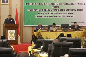 TIMIKA, (timikabisnis.com) – Setelah menerima dan menyetujui Rancangan Anggaran Pandangan akhir dan Belanja Daera (RAPBD) Kabupaten Mimika Mimika tahun 2023 senilai Rp 5.130.288.949.668, Fraksi Partai Perindo dan PSI menyampaikan tiga catatan penting pada Rapat Paripurna IV Masa Sidang III tentang pendapat akhir fraksi-fraksi DPRD Mimika dan penutupan pembahasan RAPBD Kabupaten Mimika tahun anggaran 2023, Jumat (25/11/2022) di Hotel Grand Mozza malam.
