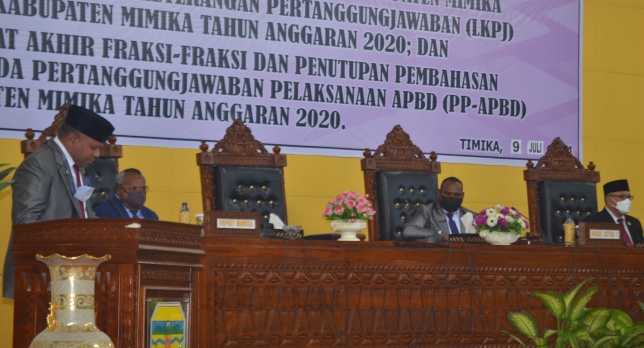 TIMIKA,(timikabisnis.com) – Salah satu rekomendasi dan catatan dari Pendapat Akhir Fraksi Gerakan Indonesia Raya (F-Gerindra) dalam Rapat Paripurna I Masa Sidang IV tentang Penyampaian Catatan Rekomendasi DPRD Mimika terhadap Laporan Keterangan Pertanggungjawaban (LKPJ) Bupati Mimika tahun anggaran 2020 dan Pendapat Akhir fraksi Fraksi dan Penutupan Pembahasan Ranperda Pertanggungjawaban Pelaksanaan APBD (PP-APBD) Kabupaten Mimika tahun anggaran 2020 yang berlangsung, Jumat (9/7) Fraksi Gerindra melalui Ketua Fraksinya Muhammad Nurman S Karupukaro menegaskan agar setiap Organisasi Perangkat Daerah (OPD) dalam setiap mengusulkan program agar dapat menyesuaikan dengan Fiskal Daerah.