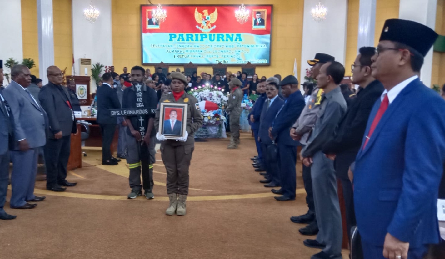 TIMIKA, (timikabisnis.com) – Dewan Perwakilan Rakyat Daerah (DPRD) kabupaten Mimika, Provinsi Papua Tengah, pada Sabtu (30/12/2023), menggelar Rapat Paripurna Pelepasan Jenasah Anggota DPRD Mimika Almarhum Bapak Drs Leonardus Kocu (Ketua Fraksi Perindo), yang berlangsung di Ruang Sidang Utama Paripurna kantor DPRD Mimika di Jalan Cendrawasih, Timika, kabupaten Mimika.