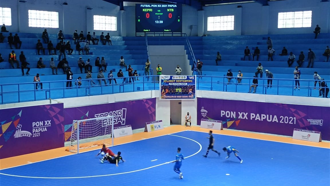 TIMIKA, (timikabisnis.com)  – Tim juara bertahan PON XIX sebelumnya, tim Futsal Provinsi Jawa Barat mampu mengkandaskan Tim Futsal Provinsi Banten dengan skor 4-2 dalam lanjutan pertandingan lanjutan penyisihan Grup B Futsal beregu Putra PON XX yang dilaksanakan di Gelangga Olahraga (GOR) POn XX Papua di kabupaten Mimika, Papua, Jumat (24/9/2021).