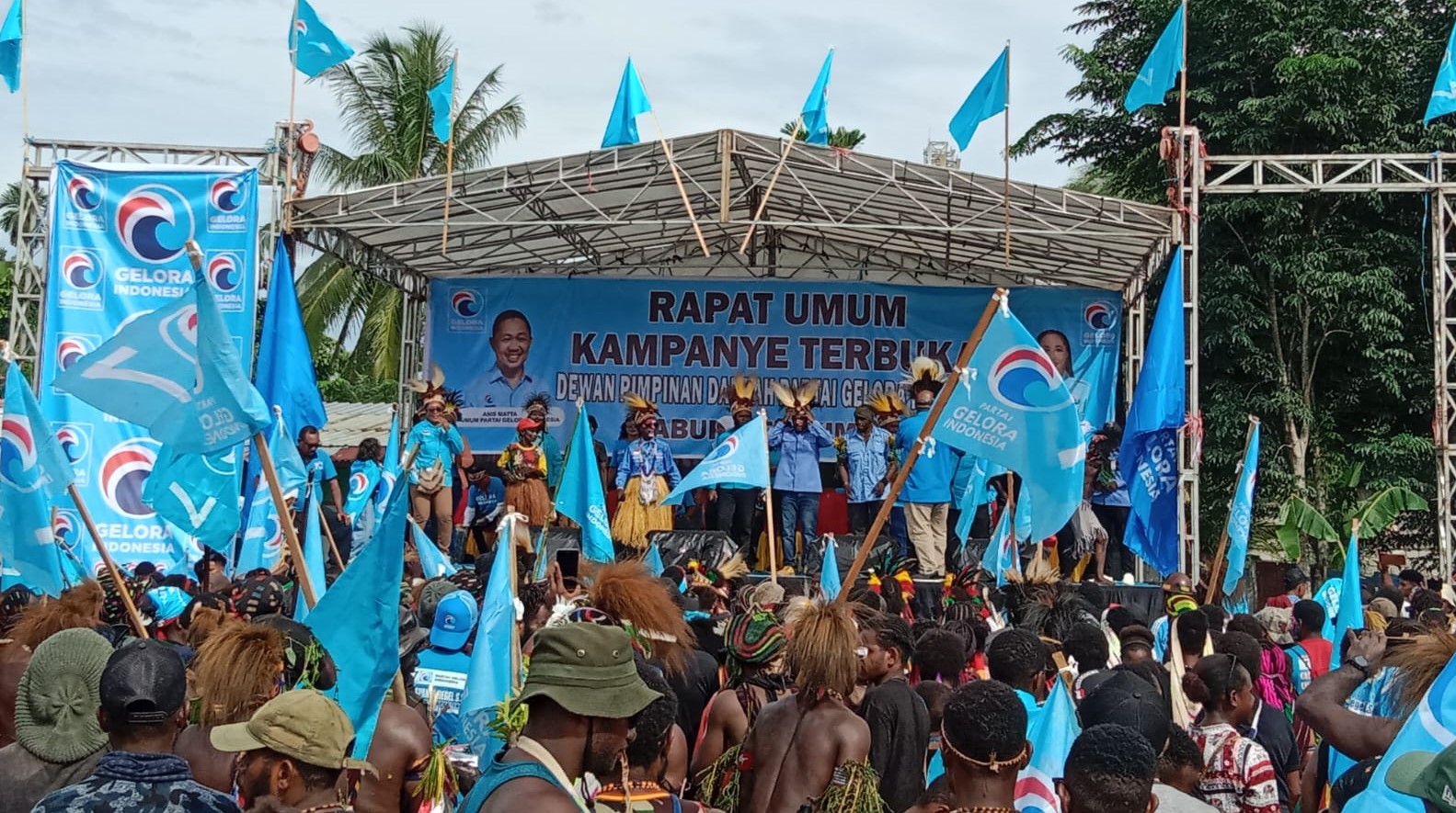 Kegitan Kampanye akbar Partai Gelora yang dihadiri ribuan massa dari masing masing Daerah Pemilihan (Dapil) itu berlangsung di Lapangan Jayanti, Keluarahan Sempan, Distrik Mimika Baru (Miru) Kabupaten Mimika, Provinsi Papua Tengah, Rabu (7/2/2024).