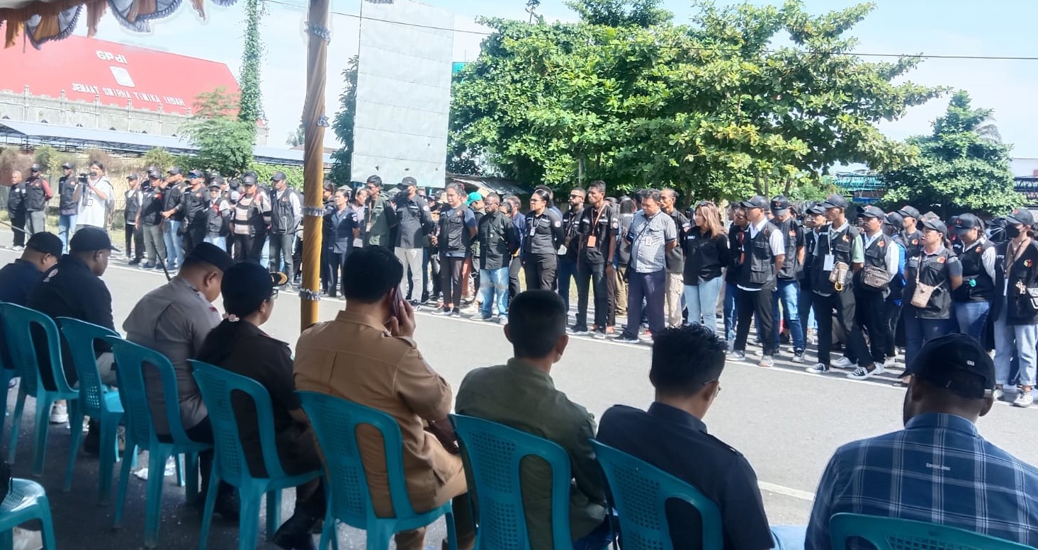 Suasana kegiatan Apel Siaga Pengawas Pemilu yang dilaksanakan oleh Bawaslu Mimika di Halaman Graa Eme Neme Yauware, Timika Indah, kabupaten Mimika, Papua Tengah, Senin (12/2/2024)/Foto : Fernando Rahawarin