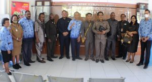 Foto bersama, Komisi A DPRD Mimika  dengan Kepala Dinas Kependudukan dan Catatan Sipil Slamet Sutedjo bersama staff di Sentra Pemerintahan SP 3, Timika, Selasa (17/5/2022)/Foto : husyen opa