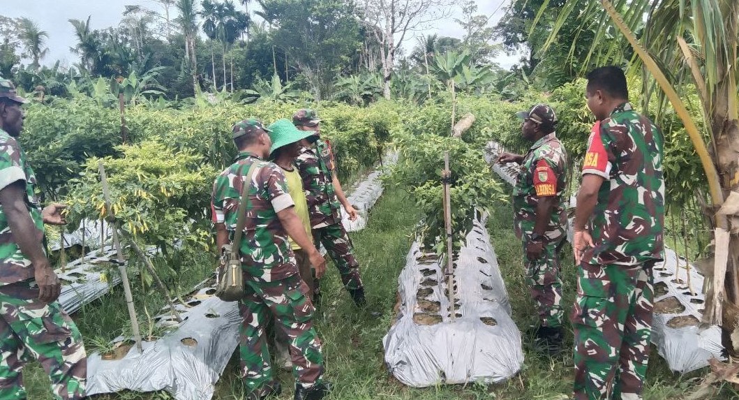 Koramil 1710-07/Mapurujaya distrik Mimika Timur, kabupaten Mimika melalui Babinsanya melakukan pendampingan bagi petani yang yang ada di distrik Mimika Timur dan petani cabai, Selasa (19/4/2022)/Foto : Istimewa