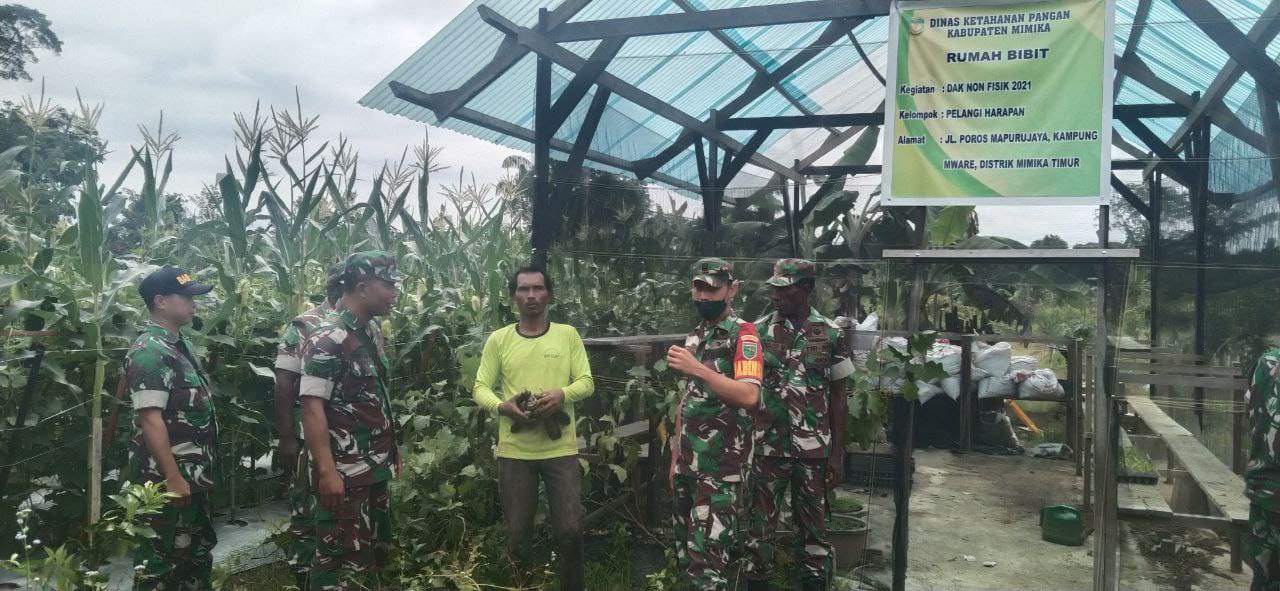 Kegiatan terpisah juga dilakukan Babinsa Koramil 1710-07/Mapurujaya guna mendukung program ketahanan pangan wilayah, para Babinsa dari koramil 1710-07/Mapurujaya secara rutin dan berkesinambungan terus melaksanakan pendampingan kepada para petani di wilayah binaan, kali ini para Babinsa tersebut sedang melakukan pendampingan terhadap petani cabai di Kp. Muare Distrik Mimika Timur, kabupaten Mimika.