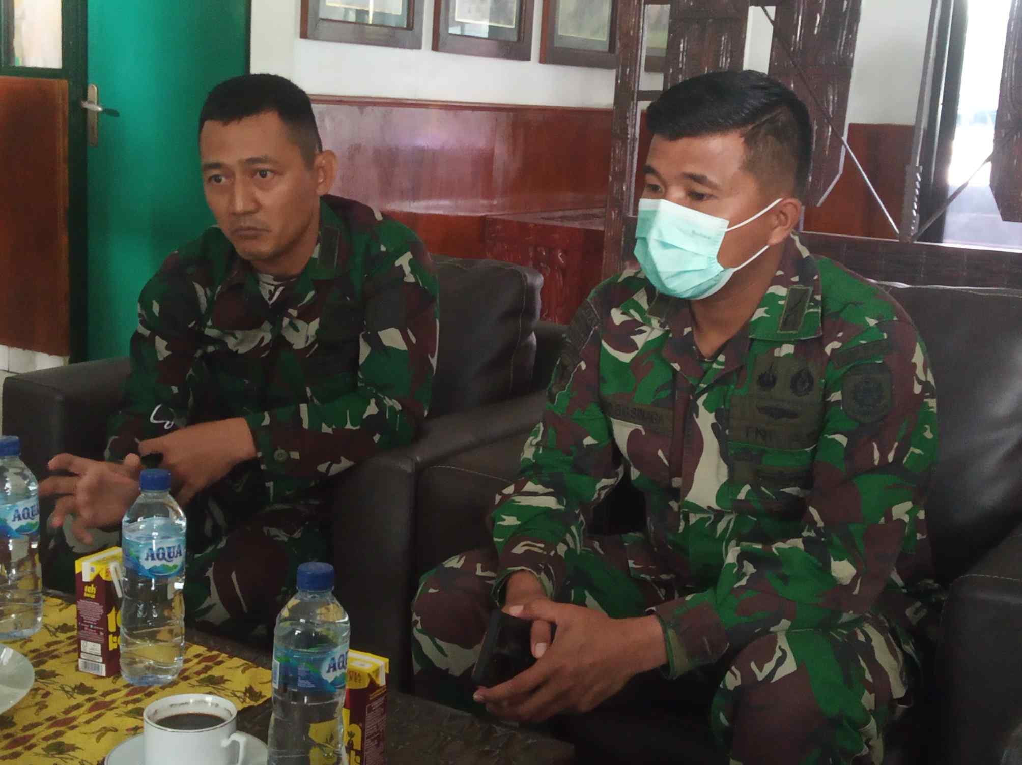 Komandan Yonif (Danyonif) Raider 754/ENK/3 Kostrad), Mayor Inf Doni Firmansah (kiri) yang didampingi oleh Pasi Intel Lettu Inf Marco Sinaga kepada wartawan di Mako Yonif 754