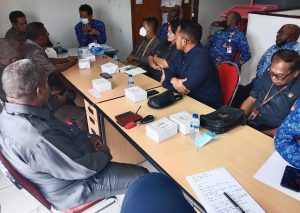 Suasana pertamuan Kepala Badan Kesatuan Bangsa dan Politik, Yan Slamet Purba bersama Komisi A DPRD Mimika, diruang Rapat kantor Kesbangpol Mimika di Sentra Pemerintahan SP 3, Selasa (17/5/2022) siang tadi./Foto : husyen opa