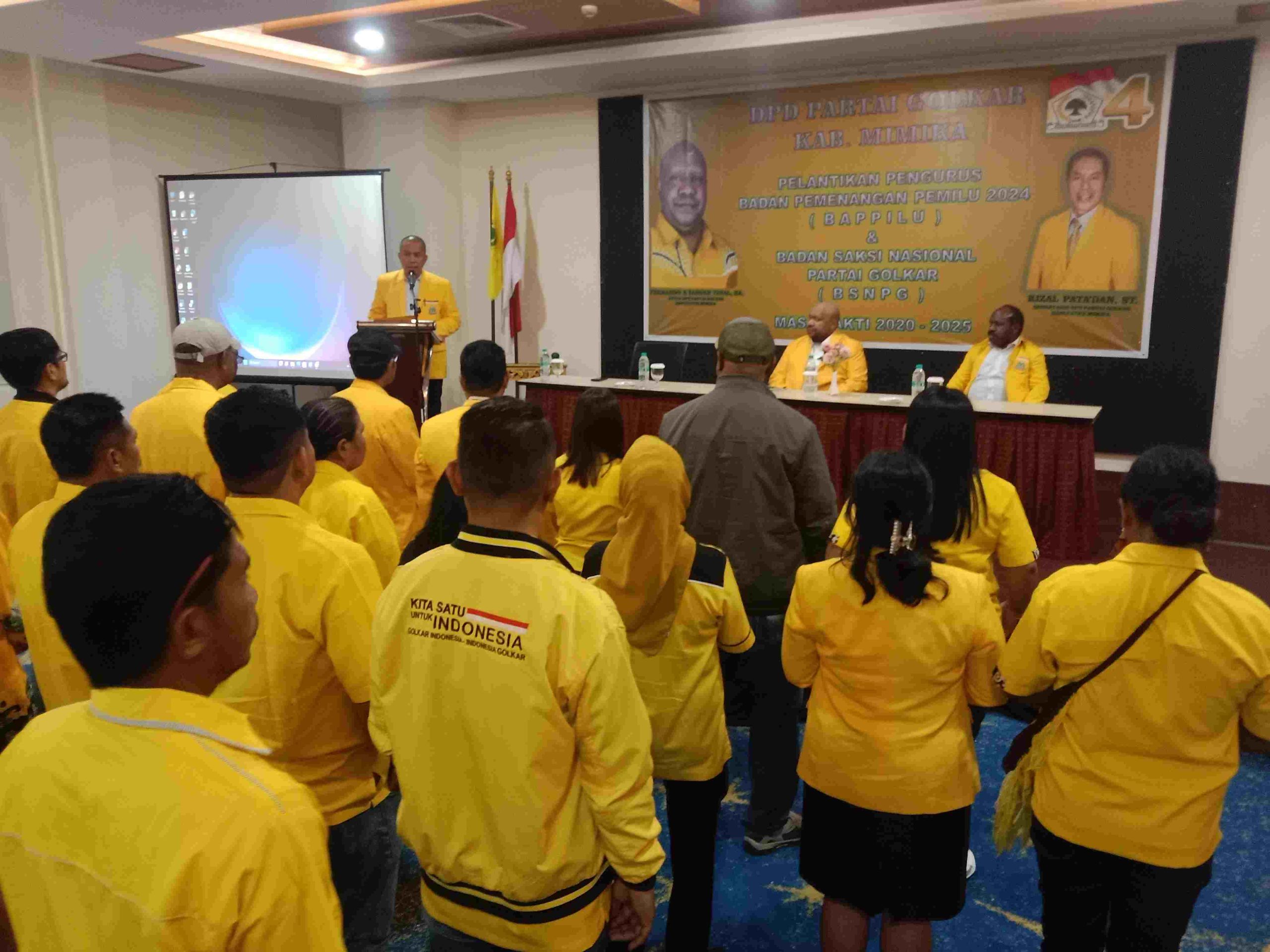 TIMIKA, (timikabisnis.com) – Pelantikan Pengurus Badan Pemenangan Pemilu 2024 (BAPPILU) Dan Badan Saksi Nasional Partai Golkar (BSNPG) Kabupaten Mimika Masa Bakti 2022 – 2025: