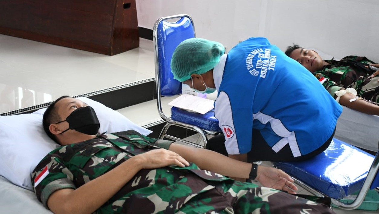 Salah satu anggota Lanal Timika saat mendonor darah dalam rangka memperingati Hari Dharma Samudera, Kamis (6/1/2022)/Foto : Istimewa