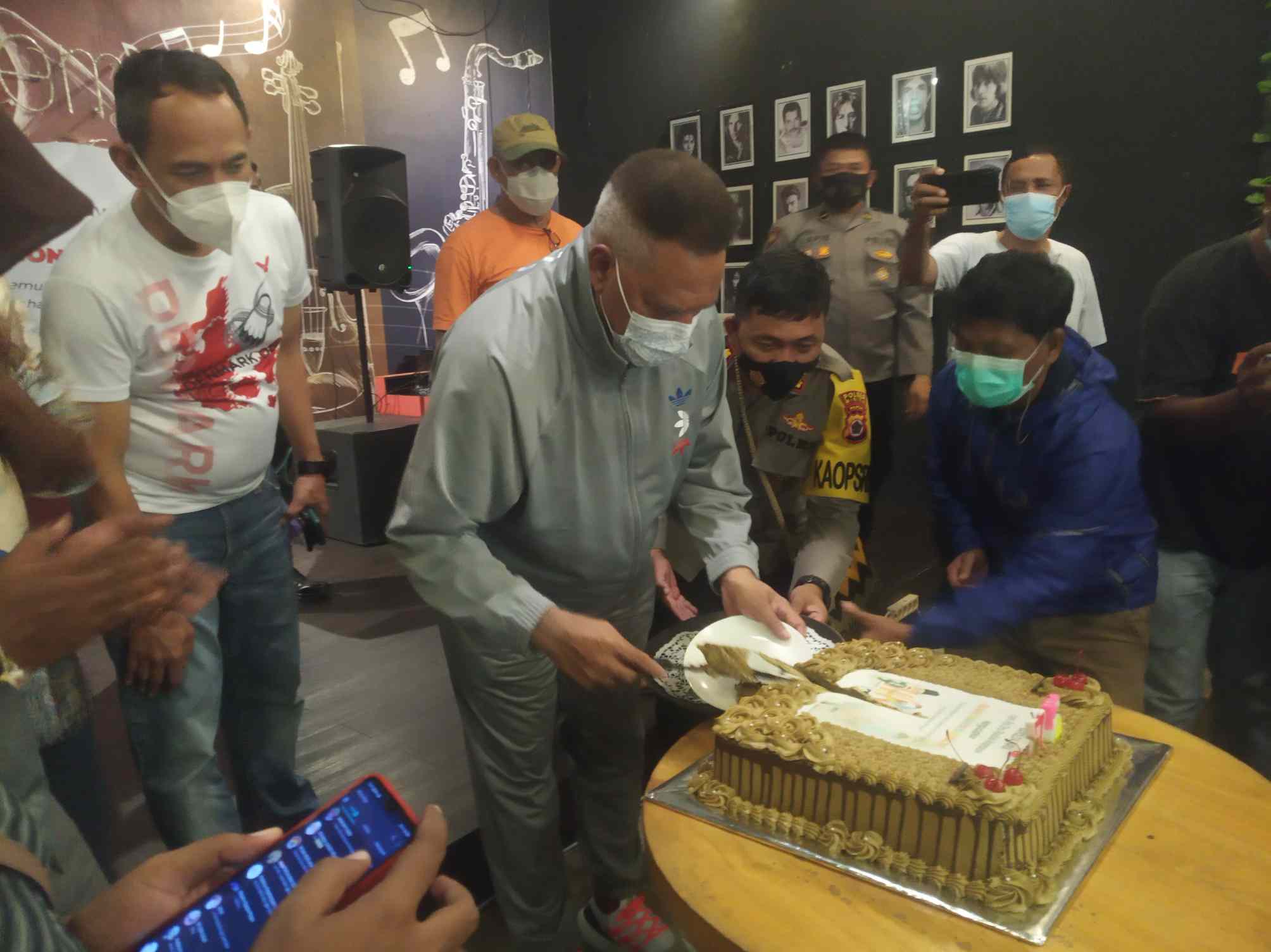 Kapolda Papua bersama Kabid Humas polda Papua, Kombes Pol Ahmad Musthofa Kamal, Kapolres Mimika AKBP I Gusti Gde Era Adhinata, Kabag Ops AKP Dionisius Helan dan sejumlah perwira Polres Mimika juga sama sama menyanyikan lagu Ulang Tahun dan Memotong kue dan membagikan ke perwakilan wartawan.