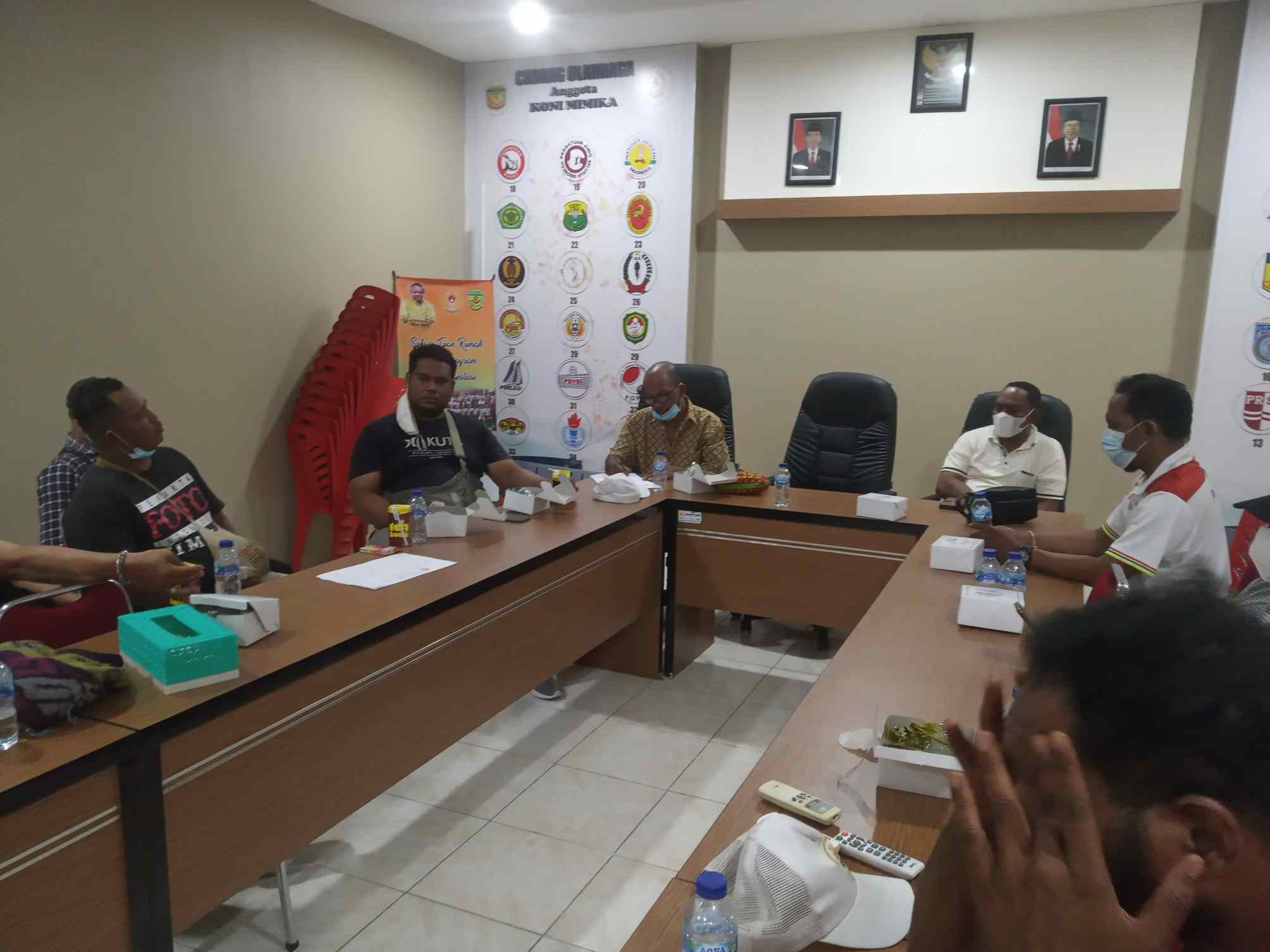 Suasana Rapat Koordinasi bagian Humas dan PPM Sub PB PON Kluster Milika, di lantai II Kantor KONI Mimika, Jumat (19/3) /foto : husyen opa