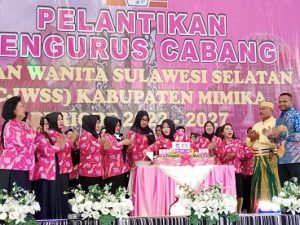 Timika, (timikabisnis.com) – Wakil Pengurus Wilayah Ikatan Wanita Sulawesi Selatan (IWSS) Papua Hj Adriyani, SH MM secara resmi melantik Pengurus Cabang IWSS (PC-IWSS) Kabupaten Mimika Periode 2022-2027, Minggu (20/11/2022) di Gedung Eme Neme auware. Pelantikan dilaksanakan berdasarkan SK Pengurus Wilayah IWSS Provinsi Papua Nomor 04/XI/SK/PW/2022.