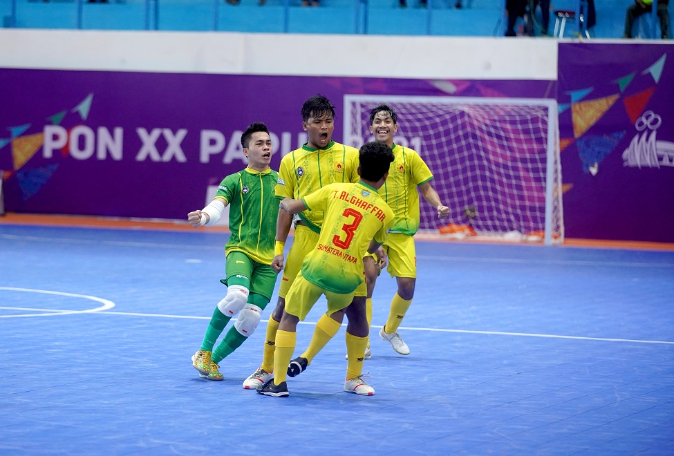 Hingga akhir laga skor tak berubah untuk kemenangan Sumut. Dengan hasil tersebut, tim futsal putra Sumut berhasil mengoleksi tiga poin perdana. (HumasPPM/Aji)