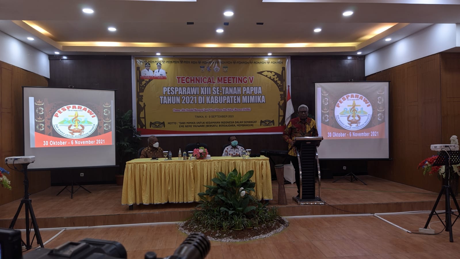 Sekertaris Umum Pesparawi XIII se Papua, I Nyoman Putu Arka dalam sambutannya mengatakan tujuan Pelaksanaan Technical Meeting V ini dalam rangka mewujudkan sinergitas dalam upaya memantapkan persiapan guna suksesnya pelaksanaan Pesparawi XIII se Tanah Papua tahun 2021.