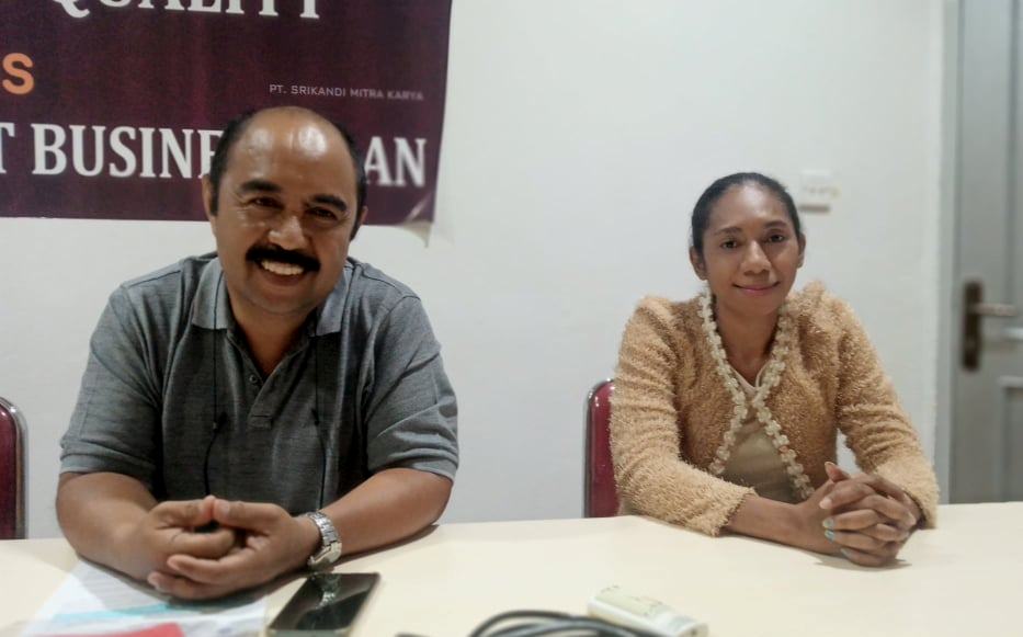 Koordinator CSR PT Srikandi Mitra Karya, Gabriel Jupiter Theedens (kiri) dan Sekretaris Jecklin Fonataba (kanan) saat memberikan keterangan pers, Rabu (24/2)/Foto : husyen opa