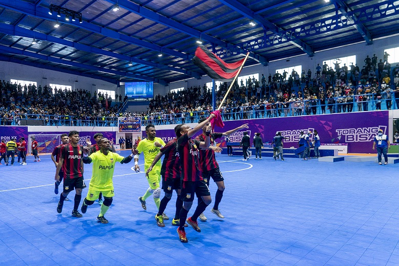 TAMPIL SEBAGAI JUARA, PEMAIN FUTSAL PAPUA SELEBRASI SALAMI SUPORTER