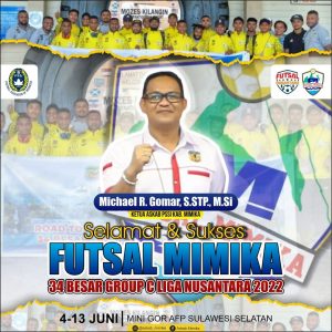 Tim Futsal Mimika berangkat ke babak 34 Besar Nasional Linus 2022 dengan di manager tim, Albert Omaleng, Elvry Leiwakabessy (Sekretaris), Coach Theo Balubun, Asisten pelatih Julman Kubuan dan Erick Rumere, serta memboyong 18 pemain.