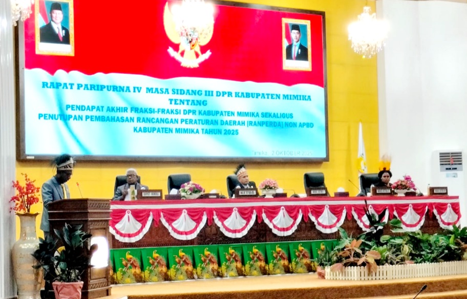 MIMIKA,(timikabisnis.com) – Delapan Fraksi DPRK Mimika – Papua Tengah menyetujui delapan (8) Rancanagan Perda (Ranperda) Non APBD Tahun 2025 untuk ditetapkan menjadi Peraturan Daerah (Perda) Kabupaten Mimika Pada Rapat Paripurna IV Masa sidang III DPRK dalam rangka mendengarkan pendapat akhir fraksi-fraksi dan penutupan sidang pembahasan Rancangan Peraturan Daerah (Ranperda) Non APBD Tahun Anggaran 2025.