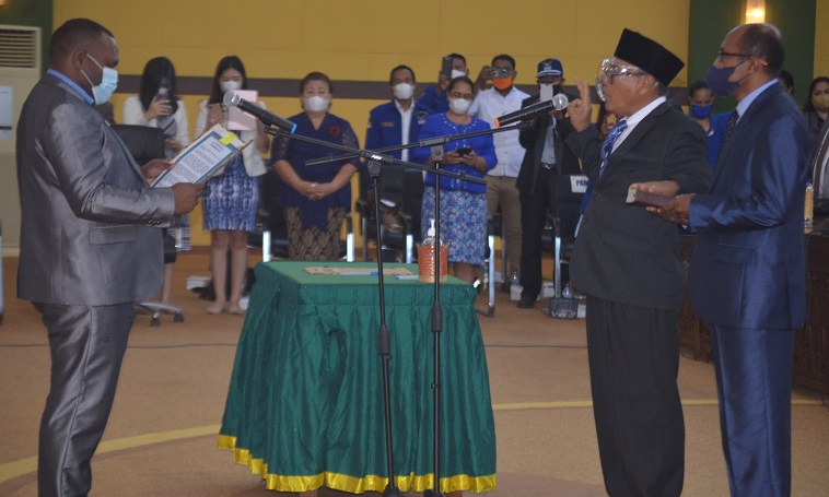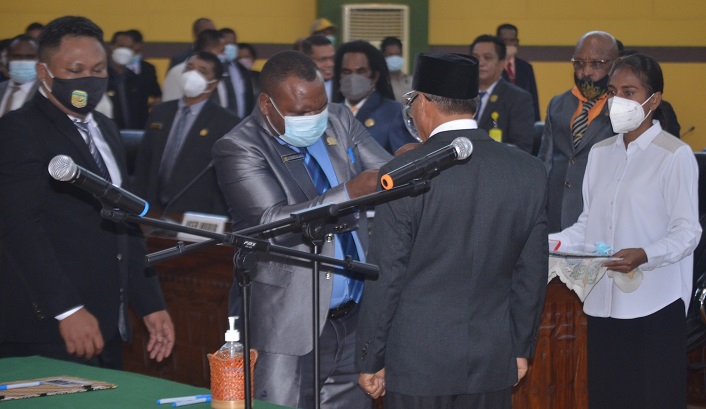 Wakil Ketua I DPRD Mimika Aleks Tsenawatme, dalam sambutannya mengatakan pengucapan janji anggota DPRD Mimika dari Partai Demokrat ini dilakukan berdasarkan Surat Keputusan Gubernur Papua nomor 155.2/233/tahun2021 tentang peresmian pemberhentian dan pengangkatan Pergantian Antar Waktu (PAW) Anggota DPRD Kabupaten Mimika periode tahun 2019-2024.