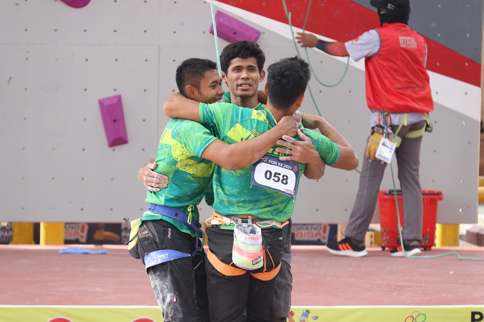 TIMIKA– Tim Panjat Tebing Provinsi Jawa Timur, pada babak final kategori lead tim putra berhasil menyabet medali emas pada pertandingan panjat tebing PON XX Papua, Kluster Mimika, yang dilaksanakan di venue Panjat Tebing Timika, Jalan Poros SP 2-SP 5, Kamis (30/9/2021) pagi.