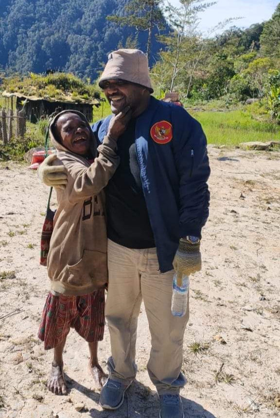Ketua DPRDM Mimika Robby K Omaleng, S. IP, MA dihampiri oleh seorang ibu yang memeluknya saat kunjungan ke Kampung Aroanop, Distrik Tembagapura, Sabtu (7/11) /foto : Istimewa