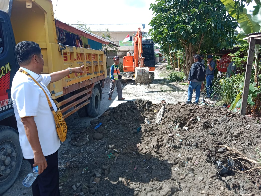 Legislator Dewan Perwakilan Rakyat Daerah (DPRD) Mimika asal Fraksi Golongan Karya ( Golkar), H. Iwan Anwar, SH, MH saat tinjau pengerjaan jalan tailing dan parit di jalan langsat, Kelurahan Pasar Sentral, distrik Mimika Baru, Kabupaten Mimika, Papua Tengah, Selasa (22/8/2023)/Foto : husyen opa