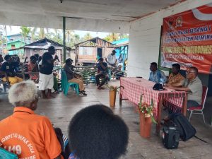 Suasana reses dari Anggota DPRD Mimika, Daerah Pemilihan (Dapil) 6, Thobias Albert Maturbongs di Kampung Migiwia dan Kampung Mimika distrik Mimika Barat, Kamis (16/2/2023)/ Foto : husyen opa