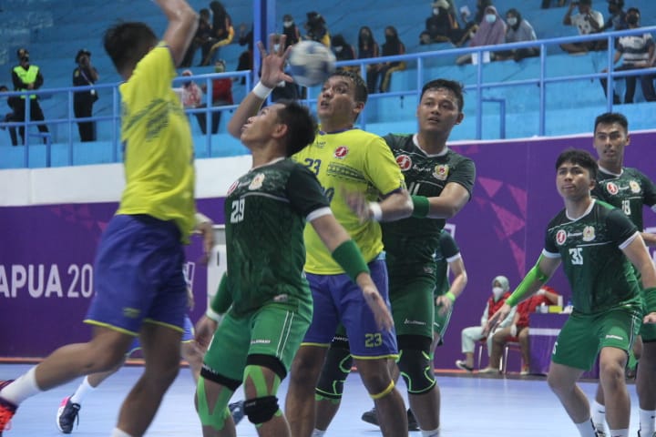 Timika, (timikabisnis.com)  – Laga semifinal cabang olahraga Bola Tangan putra PON XX 2021, mempertemukan dua tim satu pulau yakni Jawa Tengah (Jateng) melawan Jawa Barat (Jabar), di venue futsal dan bola tangan SP 2-SP 5, Mimika, Rabu (13/10/2021).