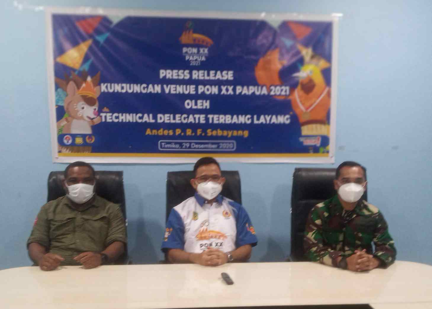 Hal tersebut ditegasakan Technical Delegate (TD) Terbang Layang Andes P. R. F Sebayang saat menggelar Jumpa Pers dengan wartawan yang didampingi Sekretaris Umum (Sekum) Sub PB PON Mimika, Cesar Avianto Tunya, MH dan Komandan Lanud Yohanis Kapiyau Timika, Letkol Pnb Surono di Sekretariat Sub PB PON Mimika di Jalan Hasanudin, Timika, Papua, Selasa (29/12).
