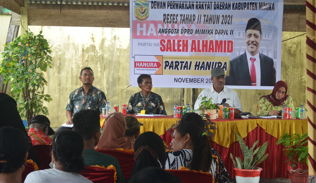 Salah satu diantaranya yakni, Saleh Alhamid asal Partai Hanura. Anggota Dewan yang tergabung di Fraksi Kebangkitan Bangsa itu menjalani reses di Daerah Pemilihan (Dapil) 2 yang berpusat di pelataran Kantor Kelurahan Sempan, Jalan Mente, distrik Mimika Baru, Mimika pada Kamis, (18/11/21).